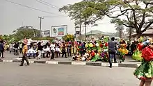 Calabar Carnival is an annual carnival held in Cross River State, Nigeria.[1] The carnival holds every December and was declared by the then governor of Cross River State, Mr. Donald Duke as an activity to mark Christmas celebration yearly. He said his vision for creating the festival was to make Cross-River a home of tourism and hospitality in Nigeria and Africa. The quality of the festival has grown over the years making it Nigeria's biggest carnival and an internationally recognized festival. It used to be a month-long event that began on the 1st of December, until the former governor of the state, Benedict Ayade reduced it to two weeks after he was elected. During the 2017 carnival, Former governor Benedict Ayade said in his speech that the carnival is to showcase Africa as the richest continent and a blessed place where the young ones should be proud to belong. The carnival has always been entertaining and colourful as different competitions take place and huge cash prizes are won.[2][3] Calabar which is also known by the name Canaan City, is a city in south-eastern Nigeria. Calabar is actually the capital city of Cross River State. Calabar sits adjacent to the Calabar and Great Kwa Rivers and Falls as well as the creeks of the Cross River.
