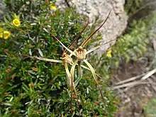 Cape spider orchid occurs in the south-west corner of Western Australia between Dunsborough and Cape Leeuwin in the Jarrah Forest biogeographic region where it grows in shallow soil on granite outcrops.[2][3][10][11] It is endemic to Meelup Regional Park.[12]