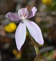 Caladenia cracens, commonly known as the elegant caladenia, is a plant in the orchid family Orchidaceae and is endemic to Tasmania. It is a ground orchid with a single, sparsely hairy leaf and a single pale to dark pink or mauve flower on a thin, wiry stem 5–18 cm (2–7 in) high.