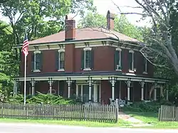 The house's first owner, Calendar Rohrbough, was born in Upshur County, Virginia and moved to Kinmundy in 1857. He served in the Civil War for the Union Army from 1862 to 1865, achieving the rank of captain as a member of the 118th Illinois Volunteer Infantry Regiment. After returning to Kinmundy, Rohrbough founded the Kinmundy First National Bank and the Kinmundy Savings and Loan Association. He was also active in politics and was elected mayor of Kinmundy before attempting a run for U.S. Congress in 1888. After Rohrbough's death, Fred O. Grissom purchased the house in 1925. Grissom also served as mayor of Kinmundy; in addition, he served as the city's postmaster for twenty-three years and as editor and publisher of the Kinmundy Express for eighteen. Grissom lived in the house until his death in 1978.[2]