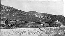 ![]() California Limited in Los Angeles, California with engine No. 53 at the La Grande Station circa 1899 | |