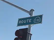 State Route 246 (SR 246) is a state highway in the U.S. state of California that runs from Lompoc east to Solvang and Santa Ynez, cutting through the Santa Ynez Valley and the Santa Barbara Wine Country. Its western terminus is at the western city limits of Lompoc, and its eastern terminus is at State Route 154 near Santa Ynez.[2][3]