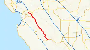 SR 25 is part of the California Freeway and Expressway System,[4] and a small portion near Hollister is part of the National Highway System,[5] a network of highways that are considered essential to the country's economy, defense, and mobility by the Federal Highway Administration.[6] SR 25 is eligible to be included in the State Scenic Highway System,[7] but it is not officially designated as a scenic highway by the California Department of Transportation.[8]
