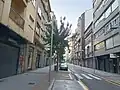 It is a central street in the first urban expansion area of the city, pedestrianised between the Peregrina square and the Herreria square, on the edge of the historic centre of Pontevedra,[23] and the Sagasta street, with one lane of traffic and two pavements from Sagasta street to Cobián Areal street. The entire street is lined longitudinally with Japanese pagoda trees on its northern side.[24]