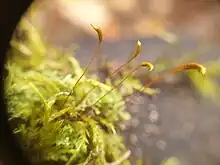 Callicladium haldanianum, commonly known as beautiful branch moss, or in horticulture tousled treasure moss, is a Species of moss native to North America. It is known for its easy care requirements, vibrant colours, and suitability for terrariums. This slow-growing plant remains small in size and exhibits adaptability to different environments, along with resistance to pests and diseases.[2] During the autumn and winter seasons, Callicladium haldanianum produces reddish orange-brown capsules that develop slight wrinkles when dry.[3]