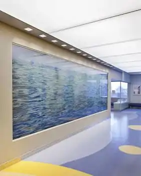 Calm Waters is installed in the Richard M. Fairbanks Burn Center on the 4th level of Sidney & Lois Eskenazi Hospital.