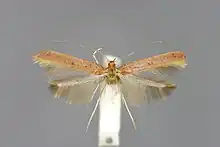 Caloptilia elongella (commonly known as pale red slender)[2] is a moth of the family Gracillariidae. It is known from all of Europe east to eastern Russia. It is also found in North America from British Columbia, south to California and east in the north to New Hampshire and New York.