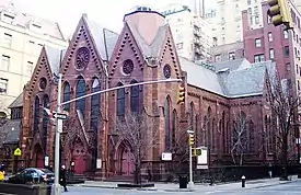 Calvary Church is an Episcopal church located at 277 Park Avenue South on the corner of East 21st Street in the Gramercy Park neighborhood of Manhattan, New York City, on the border of the Flatiron District. It was designed by James Renwick Jr., the architect who designed St. Patrick's Cathedral and Grace Church, and was completed in 1848. The church complex is located within the Gramercy Park Historic District and Extension.[1] It is one of the two sanctuaries of the Calvary-St. George's Parish.