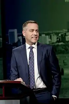Broten led the NDP into the 2016 provincial election against a popular Brad Wall and Saskatchewan Party government. The NDP ultimately won just 10 seats, a gain of one from the previous election, and the Saskatchewan Party was elected to a third successive majority government.[24] In addition, and in an echo of the 2011 election, Broten lost his own seat in the election. Broten's riding of Massey Place was reconfigured prior to the election, and so he ran in the new riding of Saskatoon Westview. There he lost to Saskatchewan Party rookie candidate David Buckingham by 232 votes.[25][26] The Liberal candidate in the riding, Naveed Anwar, had previously run for the NDP in 2011 and had sought a nomination to run again for the party in 2016. However, he claimed to have been denied the opportunity to run in the riding of his choosing, and he opted to run for the Liberals instead, intending to undermine the NDP. He ultimately received 240 votes, 8 votes more than the margin between Buckingham and Broten.[27]