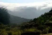 Camanchacas are marine stratocumulus cloud banks that form on the Chilean coast, by the Earth's driest desert, the Atacama Desert, and move inland. In Peru, a similar fog is called garúa, and in Angola cacimbo. On the side of the mountains where these cloud banks form, the camanchaca is a dense fog that does not produce rain.[1] The moisture that makes up the cloud measure between 1 and 40 microns across, too fine to form rain droplets.[2]