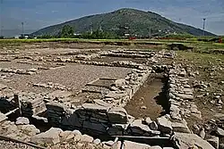 A substantial courtyard house has been compared to other examples of Etruscan house plans, for instance those of Marzabotto.