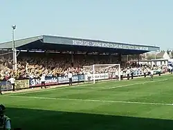 A final site, at Trumpington Meadows, was agreed upon and initial plans for an 8,000 capacity stadium were put forward, as part of a "Cambridge Sporting Village" incorporating housing and retail development.[67] Objections from residents and local councils saw the proposal blocked in 2013,[68] and plans announced in January 2015 keep the sporting village development at Trumpington, but without the new stadium. Instead Cambridge United will redevelop the Abbey Stadium.[69] First plans were presented in May 2015, which would increase capacity of the Newmarket Road End, incorporating safe standing, complete redevelopment of the Habbin Terrace and slight expansion to the Main Stand.