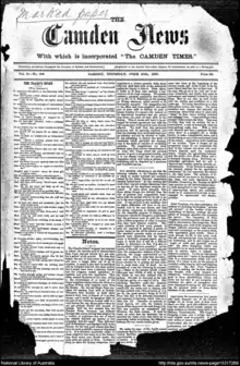 - ↑ "Camden News". State Library of New South Wales catalogue. State Library of New South Wales. 27 November 2014. Retrieved 27 November 2014.