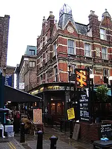 The closure of the arcade reflects the reduction in the number of antique traders in the nearby Camden Passage. The building is a Grade II listed building. Its severe windowless brick aspect is dictated by its original use, English Heritage describe its architecture as influenced by, and a tribute to, Newgate Prison (by George Dance the Younger), which had been demolished in 1902, three years before this building's construction by the LCC.[2]