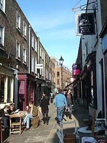 The passage was built, as an alley, along the backs of houses on Upper Street, then Islington High Street, in 1767.[1]