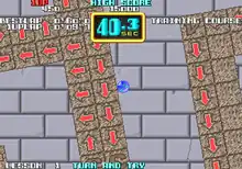 Cameltry (キャメルトライ) is an arcade video game released in 1989 by Taito. The player moves a ball through a maze by rotating the maze itself around the ball. It was ported to the FM Towns, Super Nintendo Entertainment System, and X68000. The Super NES version was published in North America and Europe as On The Ball.