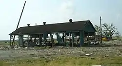 After Rita and Ike, the parish instituted stricter building codes, and insurance rates rose dramatically, making rebuilding too expensive for many residents. The population of Cameron fell 79 percent between 2000 and 2010.[3][13] By 2010, when the First Baptist Church was rebuilt, the town had lost its grocery stores and drug store and had only a gas station and a bank, and the post office and a restaurant, both housed in trailers. Most residents were still living in mobile homes.[14] The main parish library, destroyed by Rita and again by Ike, was rebuilt on tall stilts;[15] South Cameron Memorial Hospital, destroyed by Rita, was also rebuilt to withstand tropical storms.[16] A new government complex was completed in 2015 but repairs to the parish courthouse were still needed.[13]