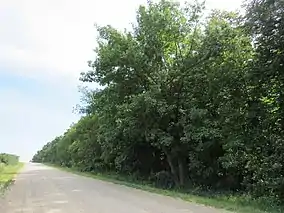 The 36-acre (15 ha) preserve features rolling hills whose slopes are covered with loess, which is generally found in the eastern section of the Southern Iowa Drift Plain. The land gradually descends north toward Hickory Creek. The preserve is covered by a hardwood forest that is dominated by red oak, but there are several white oak trees that are around 175 years old.[3] It also contains spring flora such as bloodroot, Downy yellow violet, squirrel corn, columbine, and Starry False Solomon’s-seal. Birds found in the preserve include brown creeper, Baltimore orioles, rose-breasted grosbeak, song sparrow, as well as various warblers, and woodpeckers. Hunting is not allowed in the preserve.