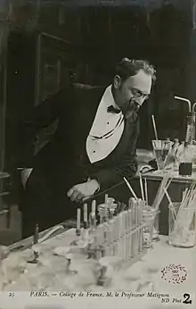 Matignon was born in a small village of Saint-Maurice-aux-Riches-Hommes in Burgundy. He studied first at the school of St. François de Salles at Troyes and then at the Lycée Condorcet and Ecole Normale in Paris (1886). After graduating in 1889 he became an assistant at the Collège de France. His experimental work in thermochemistry was summarised in a doctorate thesis. In 1893 Matignon became a lecturer at the University of Lille and in 1894 Director of bleaching, dyeing and finishing at the Institut Industriel du Nord. In 1898, he was appointed a lecturer at the Sorbonne and an assistant professor at the Collège de France, where he later served as Chair of Inorganic Chemistry from 1908 till his death. He was decorated as a Chevalier of the Légion d’honneur in 1908 and elected a member of the Académie des Sciences in 1926. Matignon became President of the French Chemical Society in 1932 and an honorary Fellow of the British Chemical Society in 1933. Matignon was a talented orator and writer, noted for his enthusiasm and extravagant dressing style.[1]