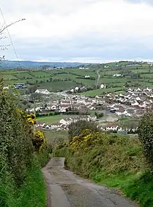 Camlough (/ˈkæm.lɒx/ KAM-lokh; from Irish Camloch, meaning 'crooked lake')[2] is a village west of Newry in County Armagh, Northern Ireland. The village is named after a lake, known as the Cam Lough. South of the village is Camlough Mountain (or Slieve Girkin), part of the Ring of Gullion[3] and is designated an Area of Outstanding Natural Beauty. Camlough had a population of 1,074 at the 2011 Census.[4]
