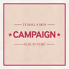 "Campaign" is a song written and performed by American singer Ty Dolla $ign featuring American rapper Future. Produced by D.R.U.G.S, it was released on July 11, 2016 as the lead single from the former's ninth mixtape of the same name (2016).[1][2][3] The official remix of the song by Charlie Heat was also included on the mixtape.[4]