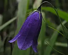 Campanula pulla, the solitary harebell, is a species of flowering plant in the family Campanulaceae, native to the northeastern Alps of Austria.[1] [2] A spreading, mat-forming perennial, the Royal Horticultural Society recommends it for scree gardens.[3] It is available from commercial suppliers.[4] There appear to be cultivars or selections; 'Blue Drops' and 'Alba',[5][6] and a hybrid with Campanula carpatica; Campanula × pulloides, which itself has cultivars, 'Jelly Bells', and 'G.F. Wilson', which has gained the RHS Award of Garden Merit.[7][8][9]