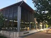 The Central Quadrangle lies to the west of Fondren Library, anchored by Brochstein Pavilion, a coffee shop and meeting space. Constructed in 2008, the glass pavilion is bounded by outdoor seating spaces, designed to revitalize the once-underused area. It is bounded by the Rice Memorial Center and Ley Student Center to the north and Herring Hall, designed by César Pelli,[8] to the south.[9]