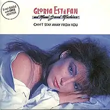 "Can't Stay Away from You" is a song by Cuban-American singer and songwriter Gloria Estefan, credited to Estefan and her former band, the Miami Sound Machine. The song was released in November 1987 by Epic as the third single from their multi-platinum album, Let It Loose (1987). It became Estefan's (and her band's) fifth top 10 hit in the United States, peaking at #6 on the Billboard Hot 100 chart; it was their second #1 hit on the adult contemporary chart, following 1986's "Words Get in the Way". The song originally peaked at #88 on the UK Singles Chart in May 1988, however the song was re-released after the success of its follow-up, "Anything for You", peaking at #7 in March 1989.