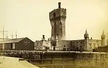 The dock was the last and biggest designed by Jesse Hartley, opening in 1859.[3] In 1862, the Canada half-tide basin, which became Brocklebank Dock, was added by George Fosbery Lyster.[3] Canada Dock dealt in timber being named after the main source of the trade, Canada. Fire was the greatest concern and the dock was initially kept isolated from the rest of the dock system for safety reasons. However, a fire did occur in 1893 causing £50,000 of damage.[3] The original river entrance also presented navigational difficulties, with the area affected by silting.[3] Modifications to the basin took place in the late nineteenth and early twentieth centuries, creating the branch docks and graving dock.[3]