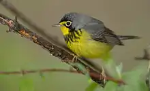 The Canada warbler (Cardellina canadensis) is a small boreal songbird of the New World warbler family (Parulidae). It summers in Canada and northeastern United States and winters in northern South America.
