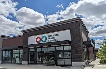 Canadian Blood Services (French: Société canadienne du sang) is a non-profit charitable organization that is independent from the Canadian government.[3] The Canadian Blood Services was established as Canada's blood authority in all provinces and territories except for Quebec in 1998.[4] The federal, provincial and territorial governments created the Canadian Blood Services through a memorandum of understanding.[5] Canadian Blood Services is funded mainly through the provincial and territorial governments.[5]