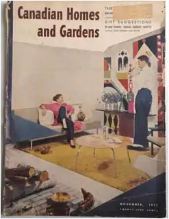 Lorrie Dunington-Grubb (1877–1945), a Toronto-based landscape architect who co-founded Sheridan Nurseries, wrote articles on garden design for Canadian Homes and Gardens.[11] The magazine also helped to promote Canadian nationhood through the concept of a popular Canadian culture expressed in terms of residential aesthetics.[12] Thus in July 1929 Canadian Homes and Gardens published an article on a project by the architect Elizabeth Lalor Harding to convert a farmhouse in the Muskoka region into a summer residence. She was interested in developing a Canadian style of architecture.[13] Around 1945 the Greater Vancouver region emerged as a center of architectural modernism, with elegant and innovative designs.[14] This regional style was given extensive coverage in Canadian Homes and Gardens.[15]