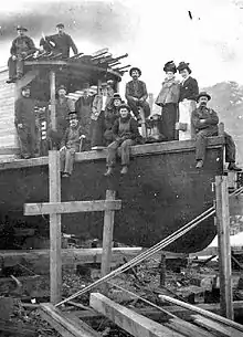 Steamboat York being assembled from prefabricated parts, at Okanagan Landing, BC, in 1901