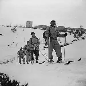 Canadian Ski Patrol members with Regimental Sergeant-Major Prévost in the lead in Italy in 1944