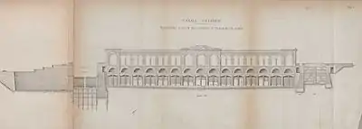 Drawing of the front of the canale Villoresi downstream building, 1887