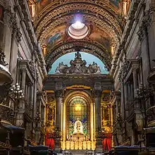 The Candelária Church (Portuguese: Igreja da Candelária, pronounced [iˈgɾeʒɐ ðɐ kɐ̃deˈlaɾjɐ]) is an important historical Roman Catholic church in the city of Rio de Janeiro, in southeastern Brazil. It was built and decorated during a long period, from 1775 to the late 19th century. The church combines a Portuguese colonial Baroque façade with later Neoclassical and Neo-Renaissance interior elements.