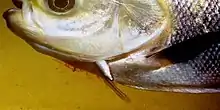 A candiru taking blood from the gills of a fish host.
