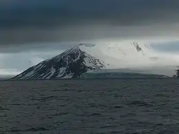 Canetti Peak, southwest view with Zagore Beach on the left and Charity Glacier on the right