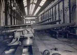 ![]() Cannone da 152/45's on pedestal mounts at the Ansaldo factory. | |