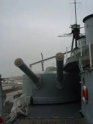 - San Giorgio-class - The two ships of this class were the San Giorgio and the San Marco for the Regia Marina. The ships mounted eight 190/45 A Model 1908 guns in four electrically powered twin-gun turrets, two on each side of the superstructure amidships, as their secondary armament.[1]