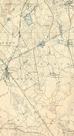 The Canoe River arises from headwaters near Lake Massapoag in Sharon, and meanders generally southwards through the towns of Sharon, Foxborough, Mansfield, and Easton to empty into Winnecunnet Pond in Norton.