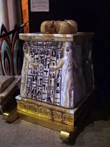 - ↑ Dodson, Aidan, "Canopic Jars and Chests", in Redford, Donald B. (ed) (2001). The Oxford Encyclopedia of Ancient Egypt, vol. II, Oxford University Press. pp. 231–235