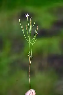 Grows up to 12-24 cm high and is apically branched with quadrangular stem. Upper leaves are considerably reduced and lower leaves are sessile. Pink flowers with 4-5 petals are pedicellate and appear in dichasial cyme inflorescence.[1]