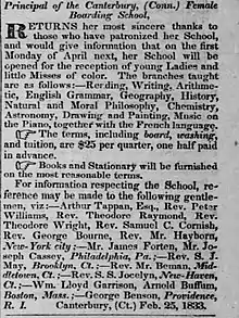 - ↑ "Prudence Crandall and the Canterbury Female Boarding School". Country Cultures. May 15, 2011. Archived from the original on July 20, 2019. Retrieved July 15, 2019.
