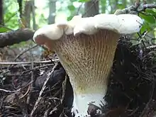 Additionally, Leucopaxillus albissimus,[7] Hygrophoropsis aurantiaca, Chroogomphus tomentosus, and species in the genera Craterellus, Gomphus, Omphalotus, and Polyozellus may have a somewhat similar appearance to C. subalbidus.