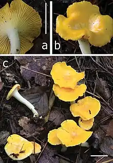 - ↑ Zhang, Yu-Zhuo; Lin, Wen-Fei; Buyck, Bart; Liang, Zhi-Qun; Su, Ming-Sheng; Chen, Zuo-Hong; Zhang, Ping; Jiang, Shuai; An, Dong-Yu; Zeng, Nian-Kai (2022). "Morphological and Phylogenetic Evidences Reveal Four New Species of Cantharellus Subgenus Cantharellus (Hydnaceae, Cantharellales) From China". Frontiers in Microbiology. 13. doi:10.3389/fmicb.2022.900329. ISSN 1664-302X. PMC 9271865.