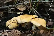 This article incorporates text from this source, which is available under the CC BY 4.0 license. - ↑ Herrera, Mariana; Bandala, Victor M.; Montoya, Leticia (2018-03-20). "Cantharellus violaceovinosus, a new species from tropical Quercus forests in eastern Mexico". MycoKeys. Pensoft Publishers. 32 (32): 91–109. doi:10.3897/mycokeys.32.22838. ISSN 1314-4049. PMC 5904560. PMID 29681739.
