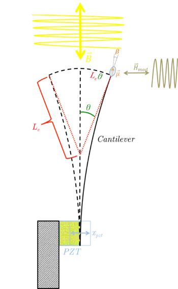 where is the effective cantilever mass, is the volume of the particle, is the cantilever-constant and is the magnetic moment of the particle. To find the equation of motion we note that we have two variables, and so there are two corresponding Lagrangian equations which need to be solved as a system of equations,