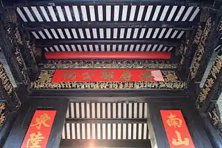 Lingnan garden consists of several substyles, such as royal gardens, private gardens, and public gardens. A good example of royal Lingnan garden is Guangzhou's Gauyiu Garden (Jyutping: Gau2 jiu6 jyun4; Traditional Chinese: 九曜園, literally "garden of nine glories"), built by Lau Yan, the first king of the Southern Han dynasty.[4] Built in the style of the Five Dynasties and Ten Kingdoms period (10th century), it laid down the foundation of modern Lingnan style and is one of the more well-preserved gardens from that period. Prominent examples of private Lingnan gardens include the "four great gardens of central Guangdong": Yuyum Sanfong, Leung's Garden, Ching Fai Garden, and Ho Garden. Among them, Yuyum Sanfong is considered the best example of classical Lingnan garden, having used features such as lintels with stone carvings, mock mountains made of stone heaps, geometric pool shapes, and massive use of wood carvings.