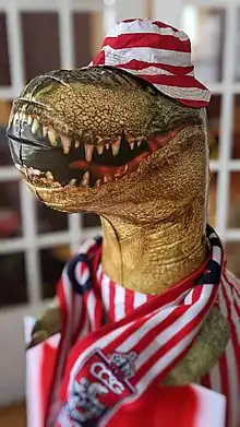 Capital City Supporters are also responsible for more elements of the growing atmosphere at TD Place. One such element is an inflatable dinosaur, named Wally, that has become an unofficial mascot for the club. The creature was first noticed by OneSoccer broadcaster Nigel Reed during a July 2022 Atlético Ottawa home game and has been referenced on broadcast multiple times since.[4][7] One other fixture added by the group is the "Olliewood" sign, in the style of the famous Hollywood sign, erected on the hill behind the east goal in honour of 2022 Canadian Premier League player of the year, Ollie Bassett.[8]